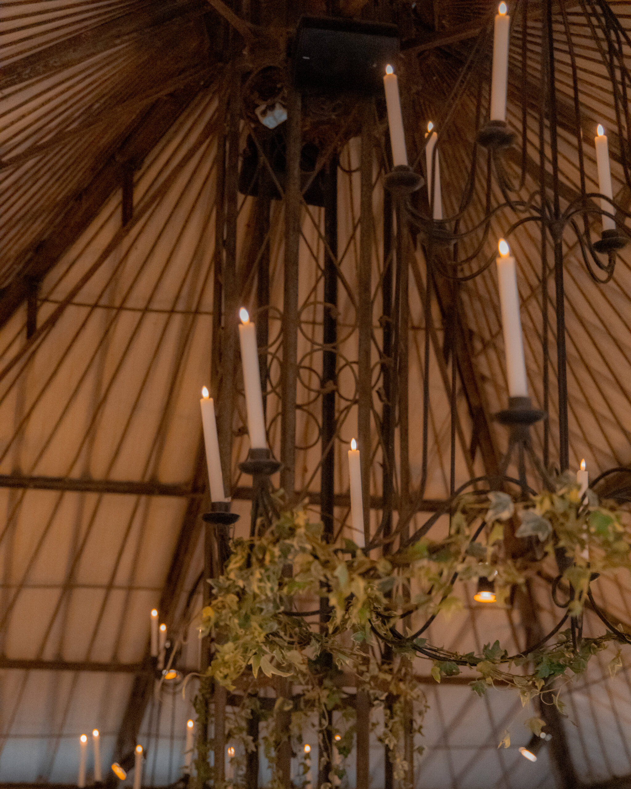 Au-dessus, des lustres de feuillage diffusent une clarté chaleureuse, enveloppant la scène dans une atmosphère presque hors du temps.
