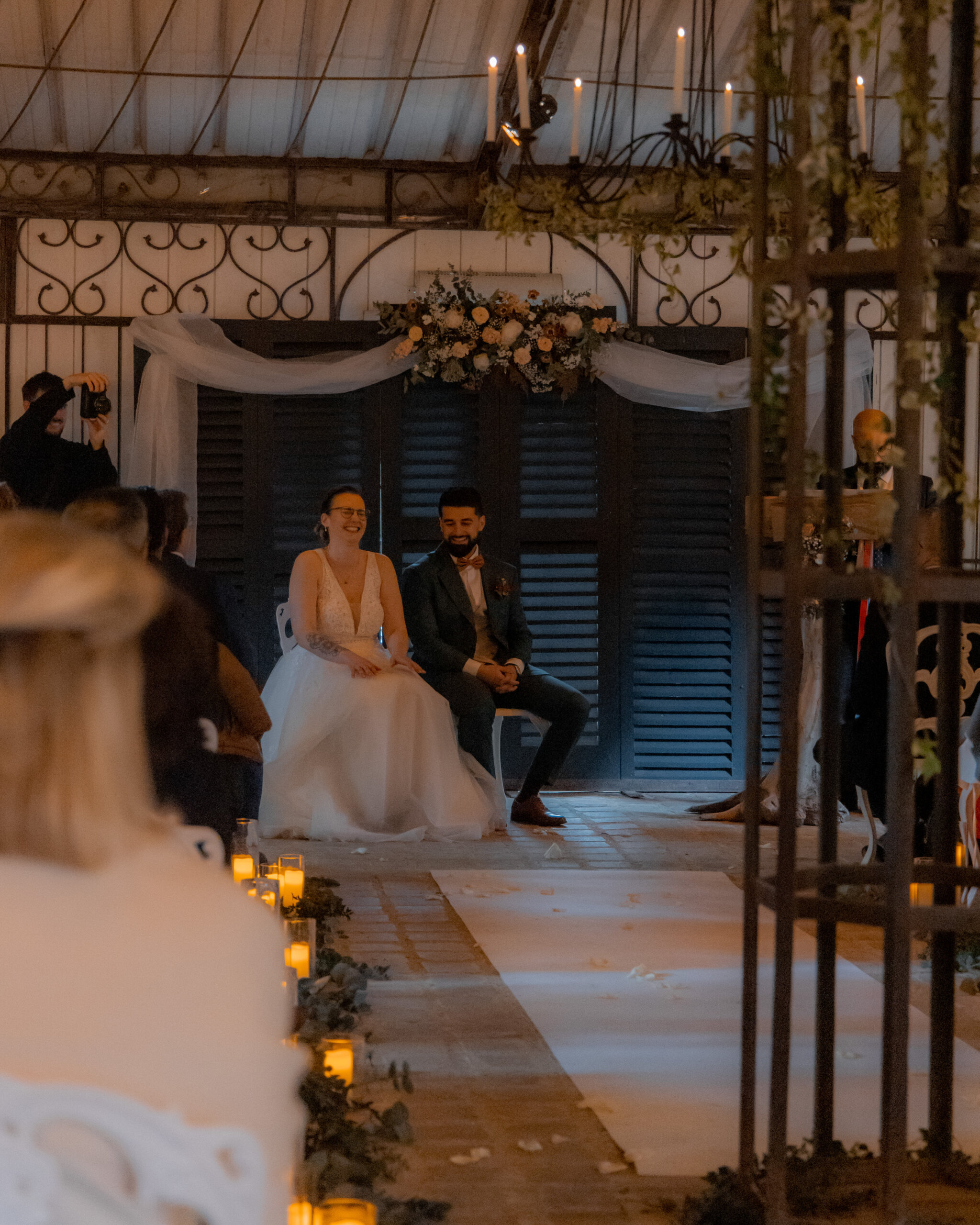 Tout a été pensé pour les accueillir dans un univers à leur image : une décoration florale aux nuances terracotta douces et vert sauge, délicatement ponctuée de lumière, comme un fil conducteur tout au long de la journée.